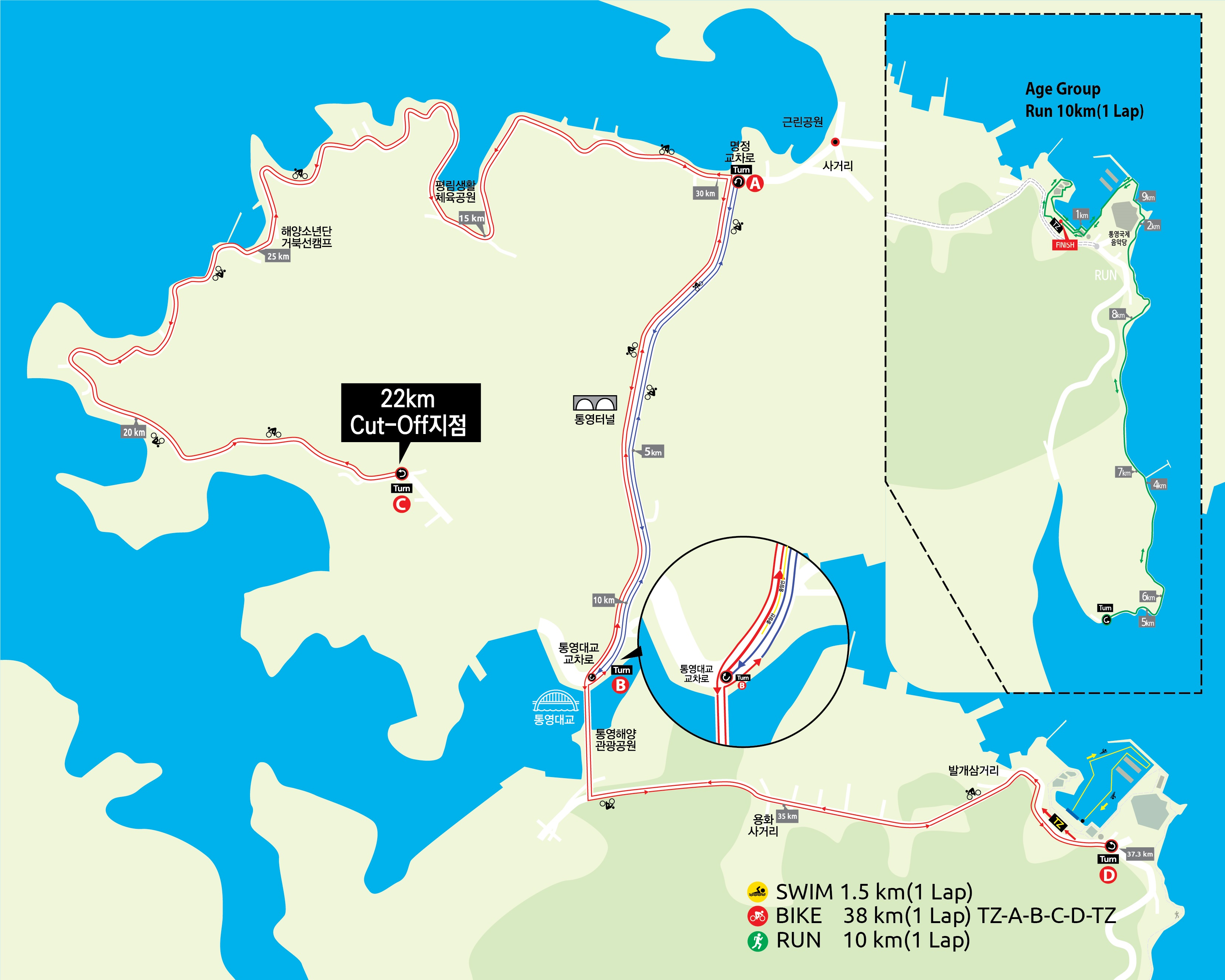| 2023-10-22(일) | 10:20 | 사이클 코스 22km 지점, 컷오프(Cut Off) | 사이클 코스 |